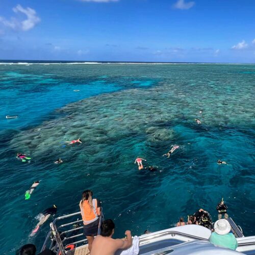 Morning tea, afternoon tea, and lunch are provided. Travel time to the reef is just over 1 hour and 15 minutes. On the journey to the reef, you will meet your PADI dive instructor and be shown and set up with all your dive and snorkel gear.